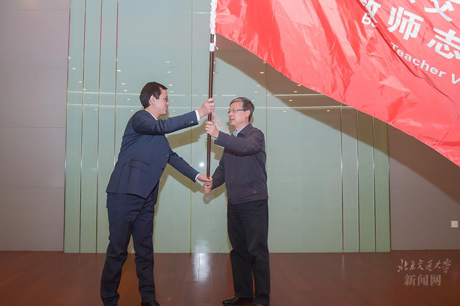 会上,高艳发布并介绍教师志愿者服务团标志。她希望广大教师志愿者用爱心和温暖环抱社会,打造交大教师志愿服务品牌,塑造交大教师良好社会形象。