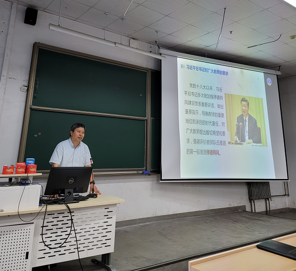 学院院长吴命利系统梳理了党的十八大以来习近平总书记就加强师德师风建设发表的重要讲话、提出的具体要求,详细解读了《新时代高校教师职业行为十项准则》《研究生导师指导行为准则》《教育部关于高校教师师德失范行为处理的指导意见》《伟德BETVLCTOR教师师德考核办法》等四个文件,并选取全国近期违反师德师风典型案例进行警示教育。吴命利强调每一位教师都应该修好师德、涵养品格、管好自身、守住底线。