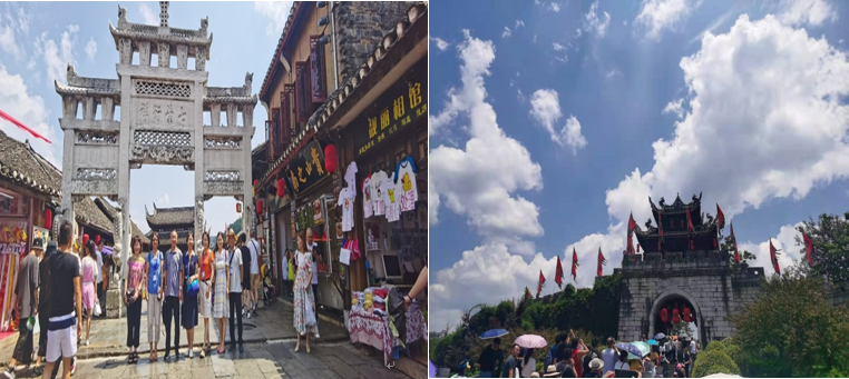 此次的贵州研修学习,不仅参观了红色基地,也包括贵州文化历史考察。7月24日,学院教师来到贵州省博物馆新馆。贵州省以众多少数民族著称,民族文物为贵博馆藏亮点,在国内独树一帜,尤以苗族服饰库和苗族银饰库独占鳌头。其中《百年征程贵州故事》专题展览,令观众真切地感受到百年来在中国共产党的领导下,贵州人民赓续红色血脉,从贫穷落后到现代繁华的沧桑巨变。下午的青岩古镇之行则是另一番景象。青岩古镇建于明朝初年,为贵州省四大古镇之一。古镇内既有清幽古朴的赵状元府等明清古建筑群,亦有红军长征指挥部等珍贵的革命文物,令老师们既受到革命历史的再教育,瞻仰先烈的伟岸与英勇,也体味了我们民族丰厚悠久的历史文化,同时还饱览了黔地层峦叠巗,苍翠欲滴的自然风光。