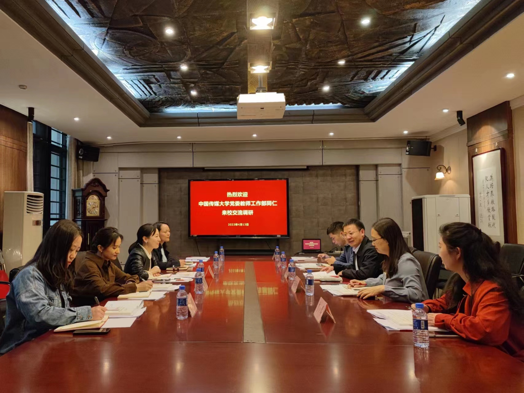 2023年4月14日下午,中国传媒大学党委教师工作部部长郝娴贞带队来访,专题调研党委教师工作委员会机制建设、作用发挥、教师教育培训等方面的建设工作。我校教师工作部部长赵冠远及相关同志参加座谈。