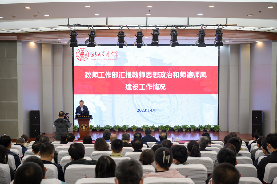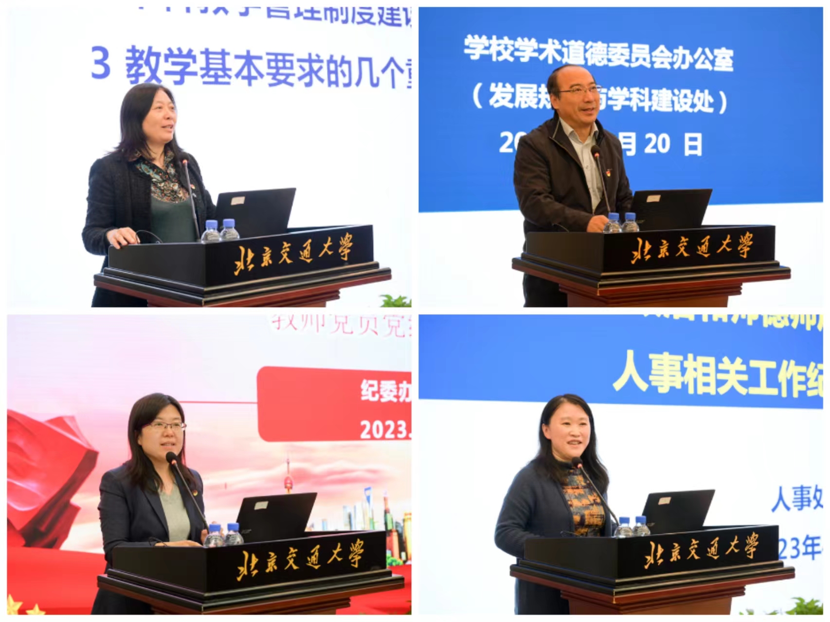 教师工作部部长赵冠远汇报了学校2022年教师思想政治和师德师风建设工作情况,通报了师德违规案例,并部署了2023年教师思想政治和师德师风建设重点工作。