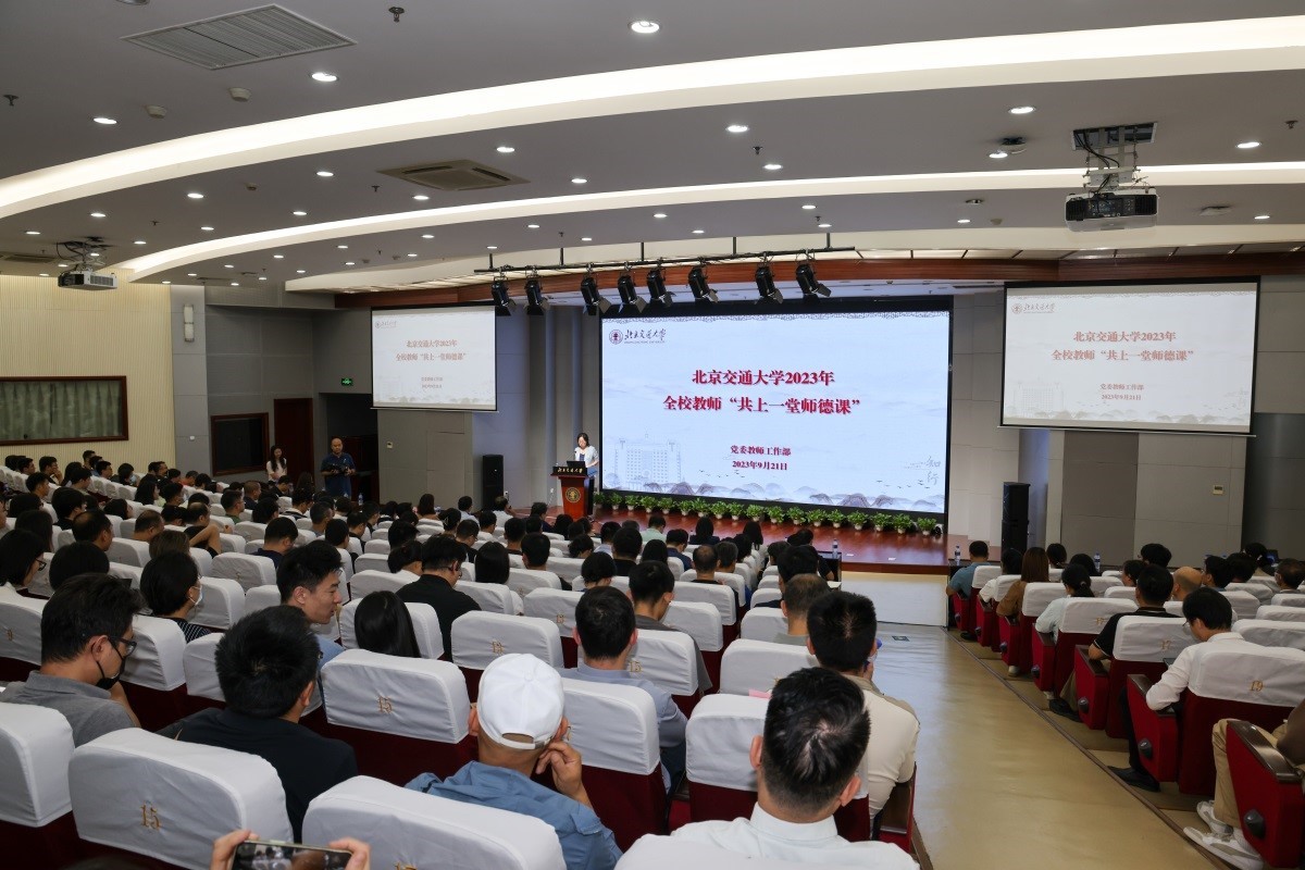 国家教育行政学院党建与思政教研部主任从春侠教授为全校教师“共上一堂师德课”,校党委副书记文海涛主持。线上线下共1400余名教师参加学习。