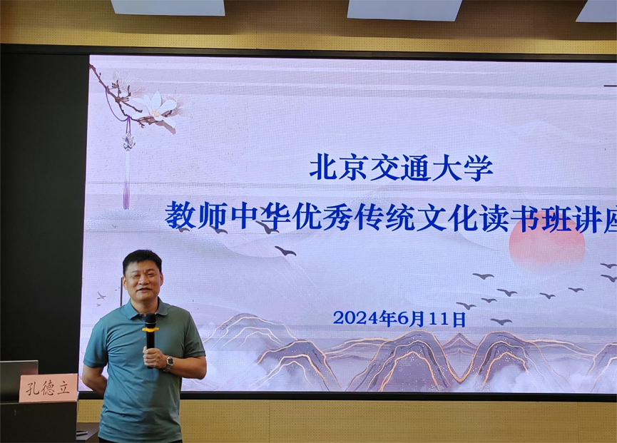 6月11日下午,2024年教师中华优秀传统文化读书班第三次讲座在建艺学院一楼报告厅成功举办。本次讲座主讲嘉宾为首都师范大学哲学系教授孔德立,党委教师工作部部长王虹英主持。